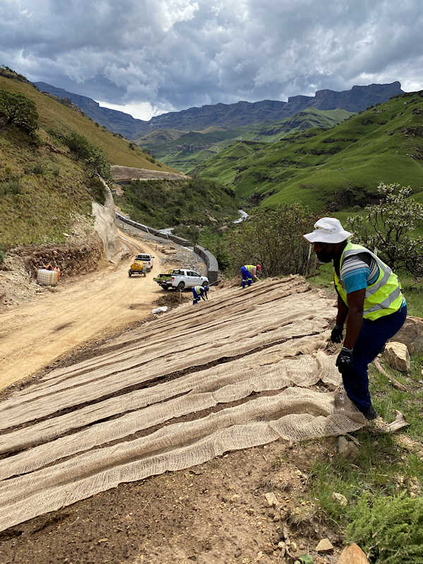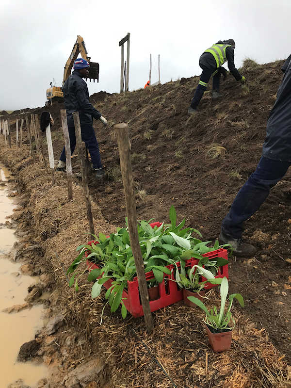 In 2017, Nkosi Nursery was awarded the contract to rescue plants and rehabilitate the slopes created by the upgrade of Sani Pass (in the uKhahlamba Drakensberg World Heritage Site). This five-year project included gathering seed, collecting plants, digging up sods, saving topsoil and taking cuttings - a multipronged approach that has delivered excellent results.
